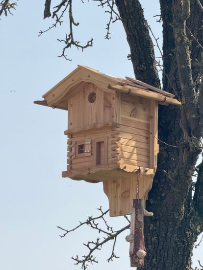 Vogelhaus Villa mit Balkon und 10 Fenstern aus 100% Lärche